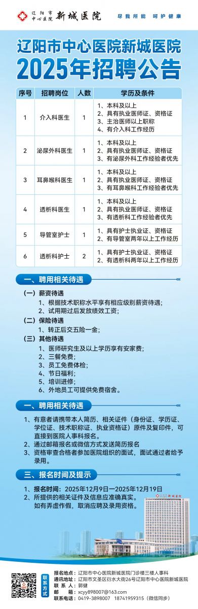 辽阳市中心医院新城医院2025年招聘公告