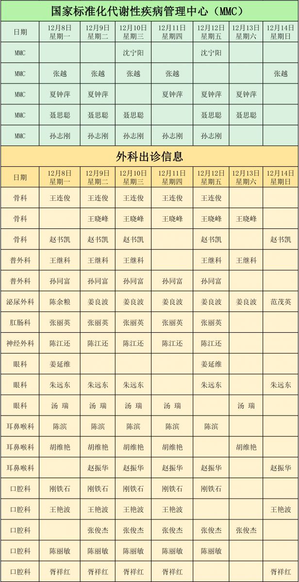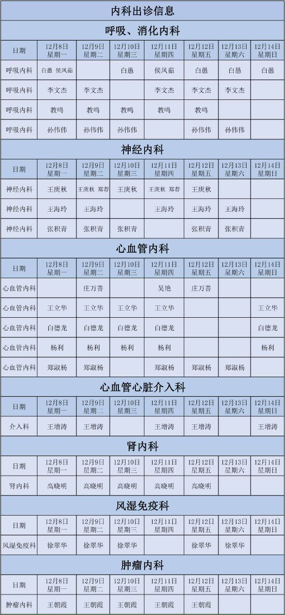 辽阳市中心医院新城医院12月8日至12月14日门诊出诊信息