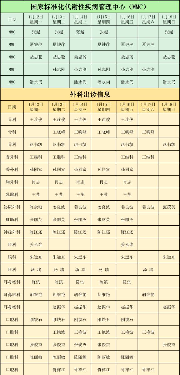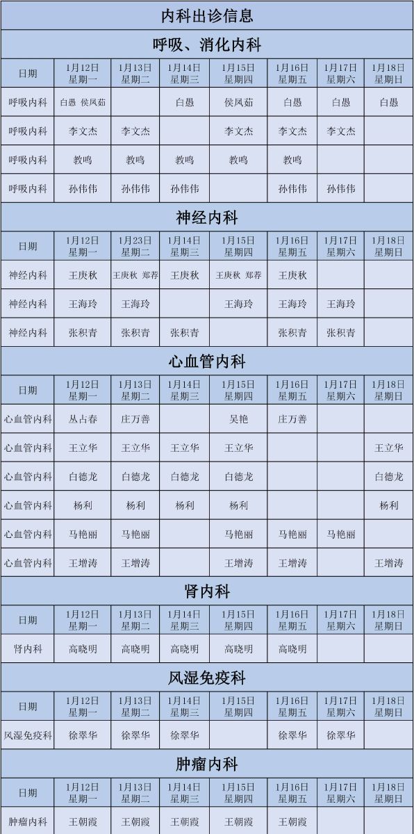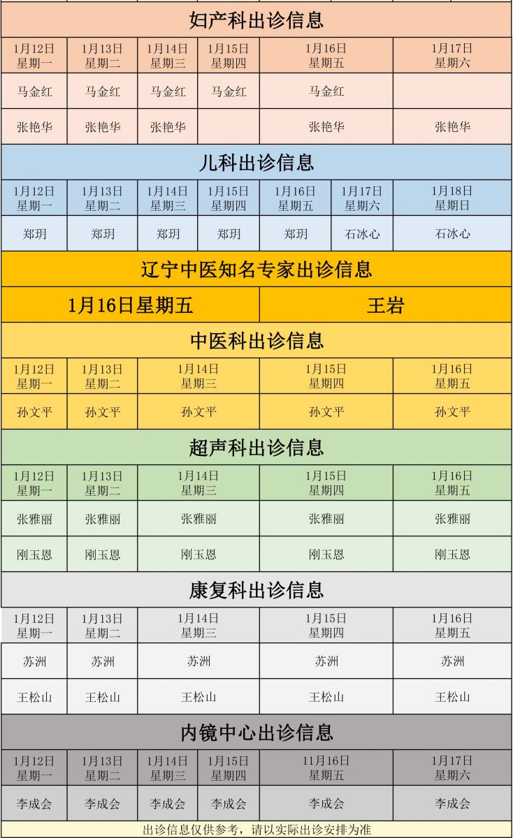 辽阳市中心医院新城医院1月12日至1月18日门诊出诊信息